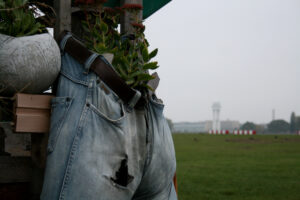 Vanaf de kant van de Hermanstrasse ren ik de baan op. Het is een mistige zaterdagochtend in oktober. Het is nog vroeg en er is slechts een enkele andere hardloper en wat mensen die hun hond uitlaten. Op het gras tussen het asfalt zie ik allemaal moestuintjes. In de zomer is het hier vaak erg druk. Mensen komen hier voor ontspanning, ontmoeting en het vlees op de barbecue wordt aangevuld met groenten uit eigen tuin. Tuinen die erg creatief zijn ingericht. Typisch Berlijn.