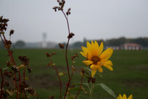 Via de baan aan de andere kant ren ik terug richting het begin van mijn ronde. De open vlakte geeft de wind ruim spel. Tegenwind is altijd een verrassing. Het verbaast me elke keer weer dat ik de kracht van de wind haast niet voel wanneer ik hem mee heb. Het rondje is in totaal ongeveer vijf kilometer. De perfecte afstand voor mij, zeker wanneer ik op vakantie ben. Op het einde draai ik me nog even om en kijk ik nog even rustig naar deze plek. Berlijn dankt haar charme aan verlaten plekken zoals deze. Nu snel naar huis, zodat ik nog meer kan gaan ontdekken van deze ruige stad.