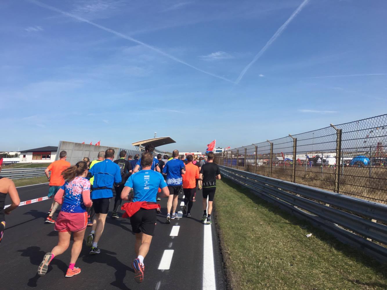Als ik aan de Zandvoort Circuit Run denk, denk ik aan storm, regen en zwaar strand. Afgelopen jaren waren de weersomstandigheden niet echt ideaal om hard te lopen. Maar dit jaar is het anders, de zon is gaan schijnen, vast een cadeautje voor mijn verjaardag! Zenuwachtig en met in mijn achterhoofd: “Ik kan altijd eerder afslaan en de 12 km volbrengen”, kom ik aan bij het Circuit Park Zandvoort. In het startvak kom ik al snel mijn loopmaatje Bonnie tegen. Allebei moeten we een rustig tempo aanhouden en het doel is de finish halen zonder blessures.