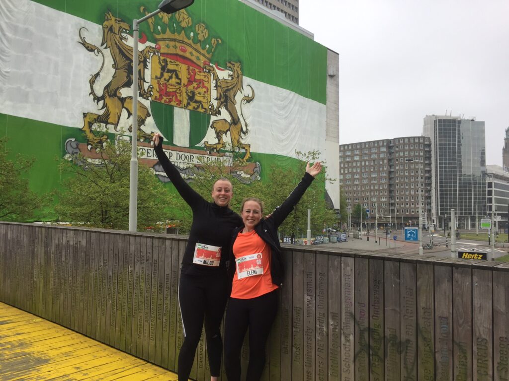 Ik was van vorig jaar even vergeten dat de parkeergarage van het WTC heftig was. Zeven verdiepingen met in totaal 90 meter draaien we omhoog. Gelukkig worden we op het dak aangemoedigd door een van de vele vrijwilligers. “Jullie kunnen het!” Dat hele eind vervolgens weer naar beneden is een stuk fijner voor de benen.