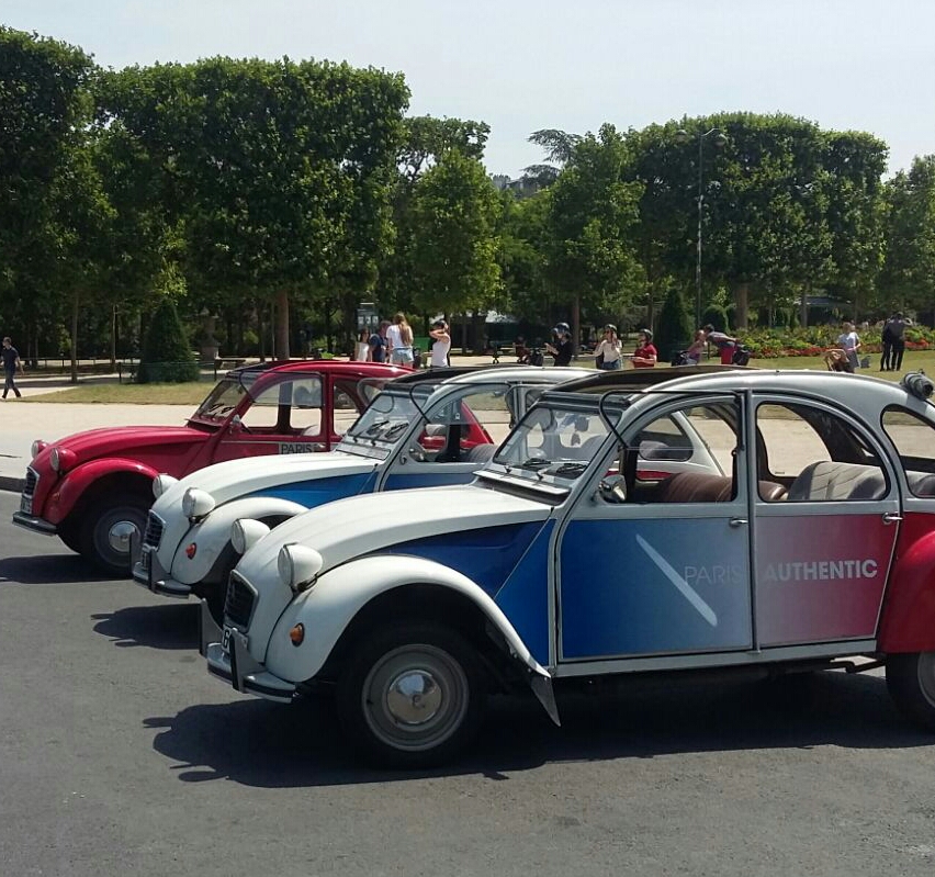 Vier rood-wit-blauw gekleurde 2CV’s (beter bekend als lelijke eendjes) staan voor ons klaar. Ruim twee uur hobbelen, schokken en stoten we in onze bolide met chauffeur Yves, compleet met alpinopet, langs de mooiste plekjes van Parijs. We rijden met milieuvriendelijke airco (open dak) en als we stil staan in het drukke verkeer voelt het alsof we gebakken en gebraden worden, zo warm is het. Hoe vaak Yves, “oeh-la-la” zegt weet ik niet, maar ik vind het alle keren geweldig klinken.