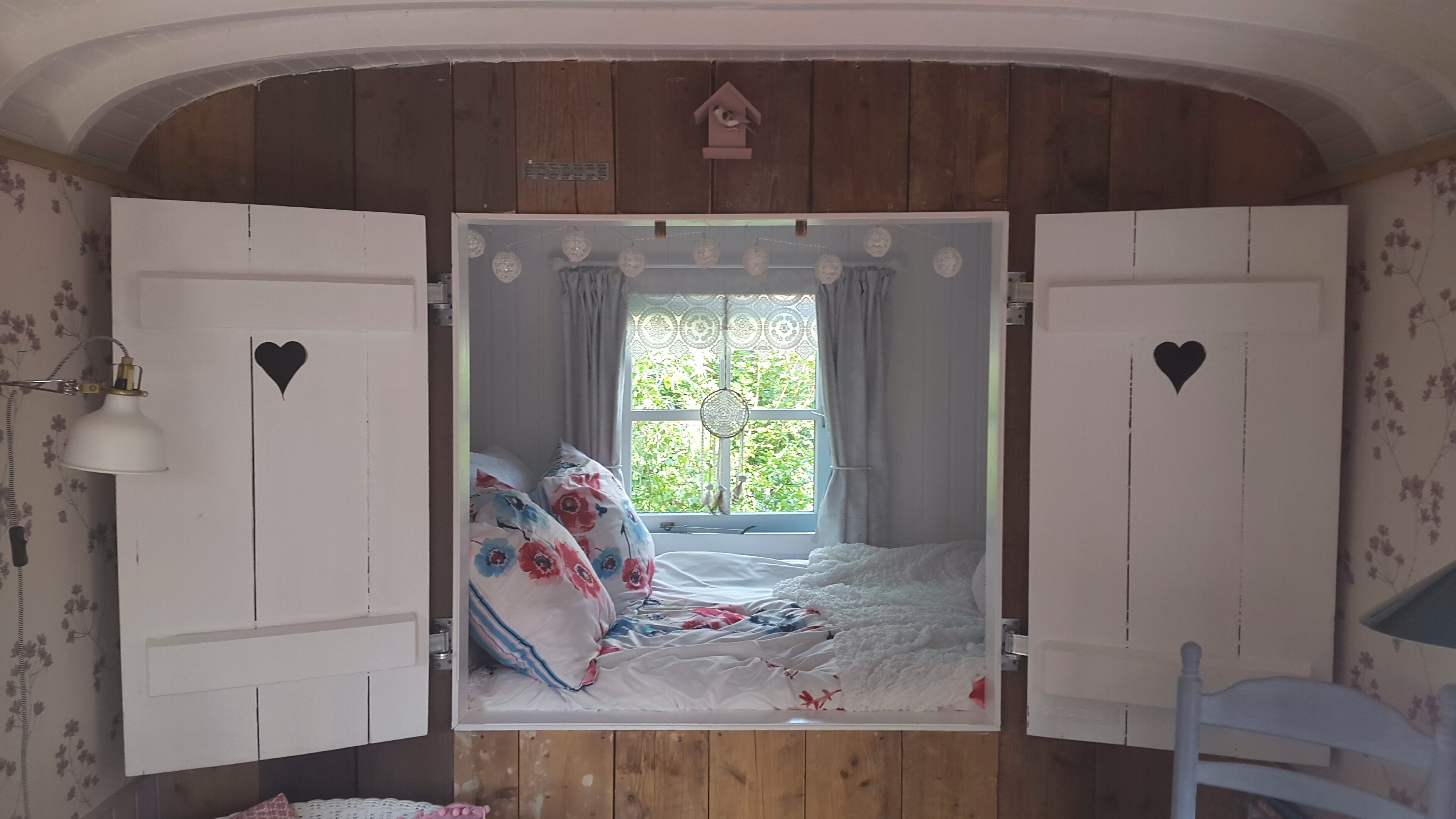 We ontwaken in de lieflijke bedstee van de pipowagen op het eiland de Woude. Omringd door kussens met fleurige bloemetjes- en streepjespatronen en bijpassend dekbed, voelen wij ons in de watten gelegd en heerlijk uitgerust. Als we de deuren openen, ruiken we de frisse geur van buiten. De vogeltjes fluiten verschillende deuntjes, een schaap blaat en verder is er niets dan rust.