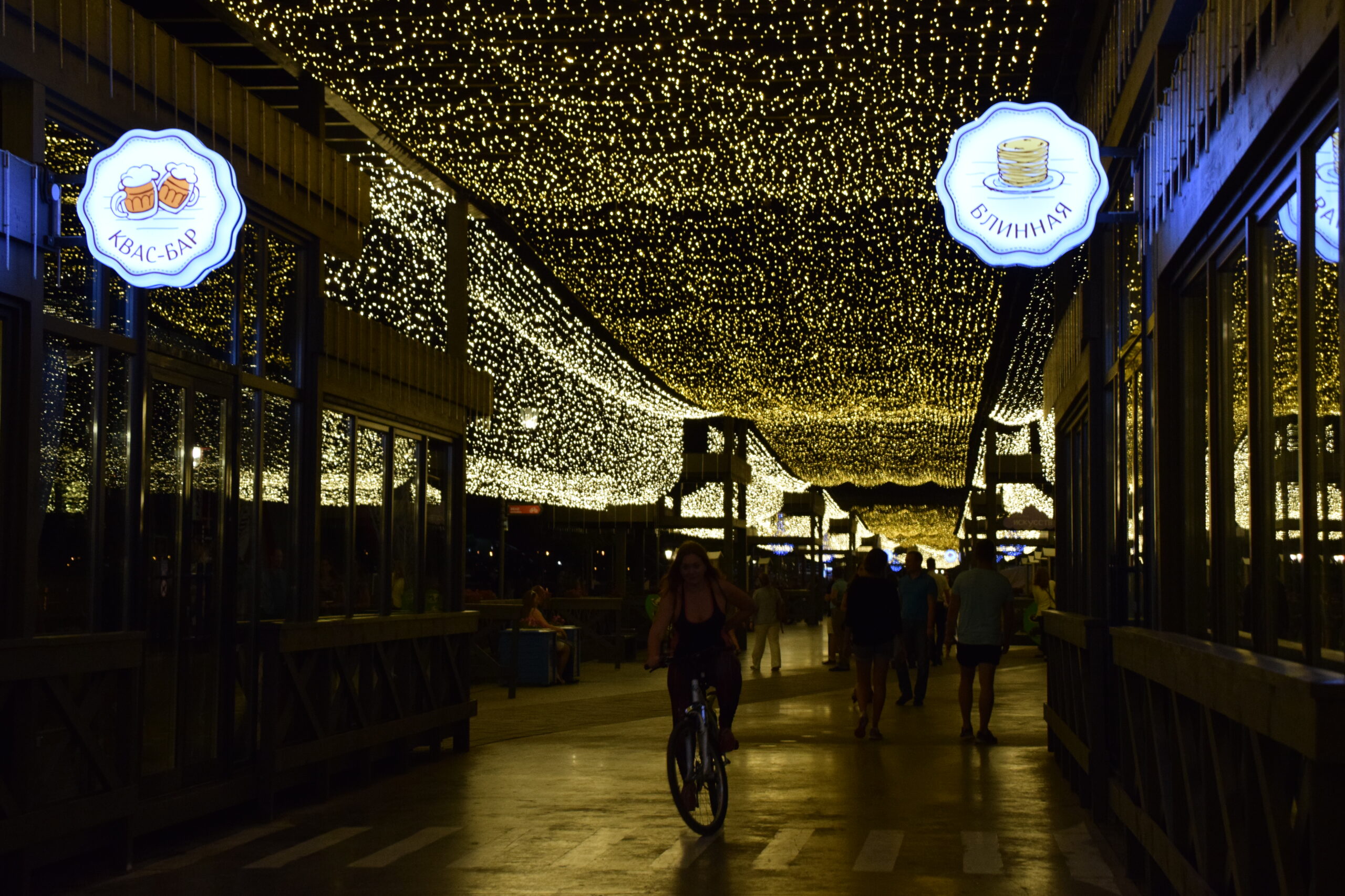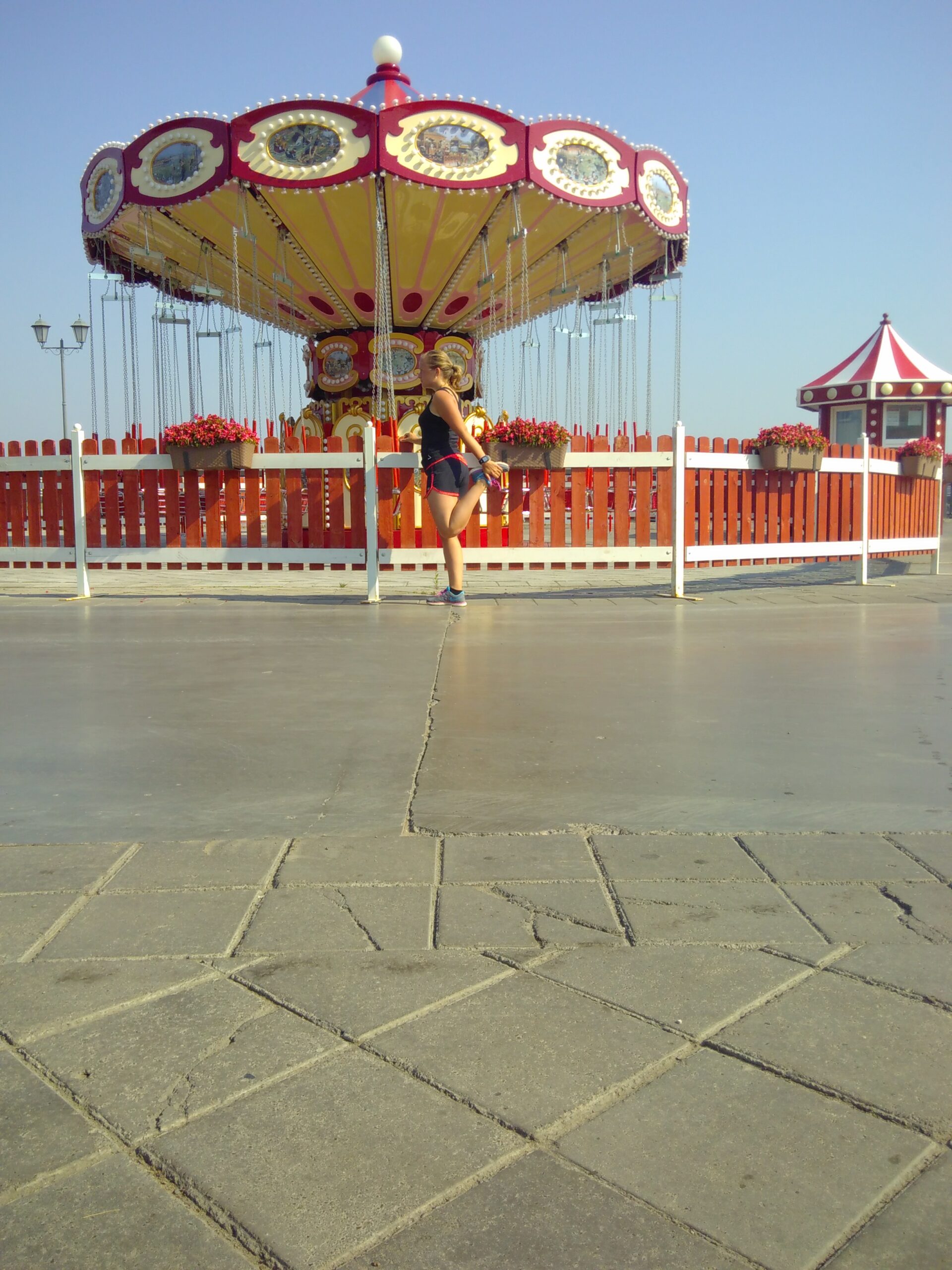 Gisteravond liep ik hier ook met Dina en haar twee dochters. Dina blijkt dol te zijn op Nederland en speelt daar regelmatig in de theaters als fluitist in het Tartaarse nationale orkest. De hele familie is erg muzikaal en ze stonden er op iets te spelen voor mij op de piano’s die her en der verspreid staan. De drukte van de avond hiervoor vormt een groot contrast met nu. Ik ren langs de draaimolen die nu nog stilstaat en langs alle huurfietsen die over een paar uur weer over het strakke fietspad zullen kruipen. Als praktische fietser uit Nederland vergeet ik soms dat deze manier van bewegen voor veel mensen gewoon een leuk uitje is.