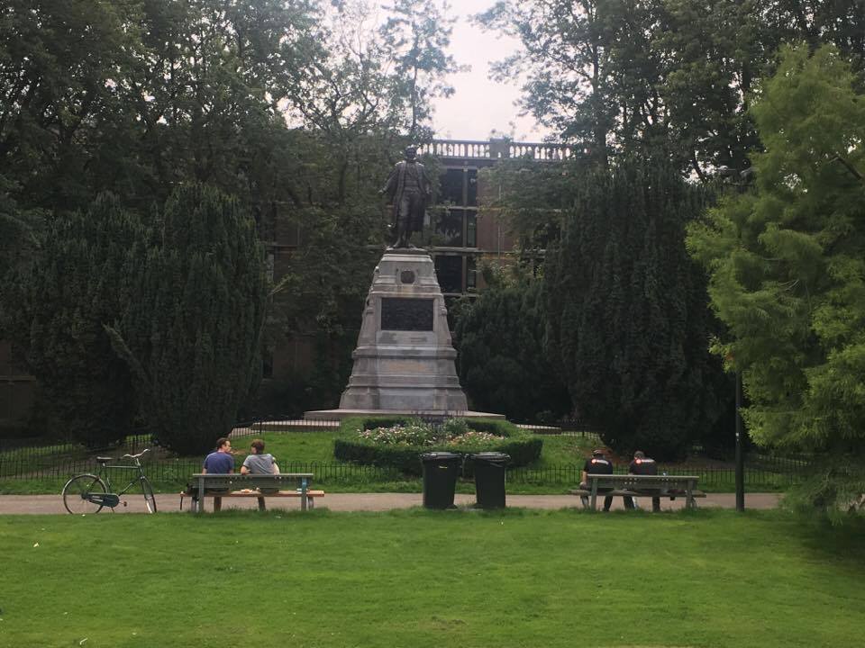 We komen via een klein straatje weer op de gracht Rapenburg welke overgaat in Steenschuur. Marleen besluit de route te vervolgen op het Steenschuur, ik besluit nog een rondje door het Van der Werff park eraan vast te plakken. Ik ren door het park langs het beeld van Pieter Adriaansz. van der Werff, de bekende burgemeester van Leiden tijdens het Beleg van Leiden. Bijna iedereen is wel een beetje bekend met het verhaal van het Leidens Ontzet en de jaarlijkse viering hiervan op 3 oktober.