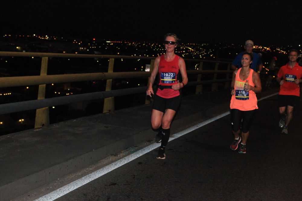 Het deelnemersveld valt snel uiteen en het is heel bijzonder om hier in het donker te lopen. Ik ben snel één met mijn muziek en dat voelt fijn. We rennen over de snelweg en her en der staan vrijwilligers met hesjes en lampjes om de weg te wijzen. Er staan niet veel mensen langs de kant, maar degene die er staan, klappen en moedigen iedereen enthousiast aan. Het voelt alsof ze er speciaal voor mij staan. “Dank”, zeg ik elke keer blij.